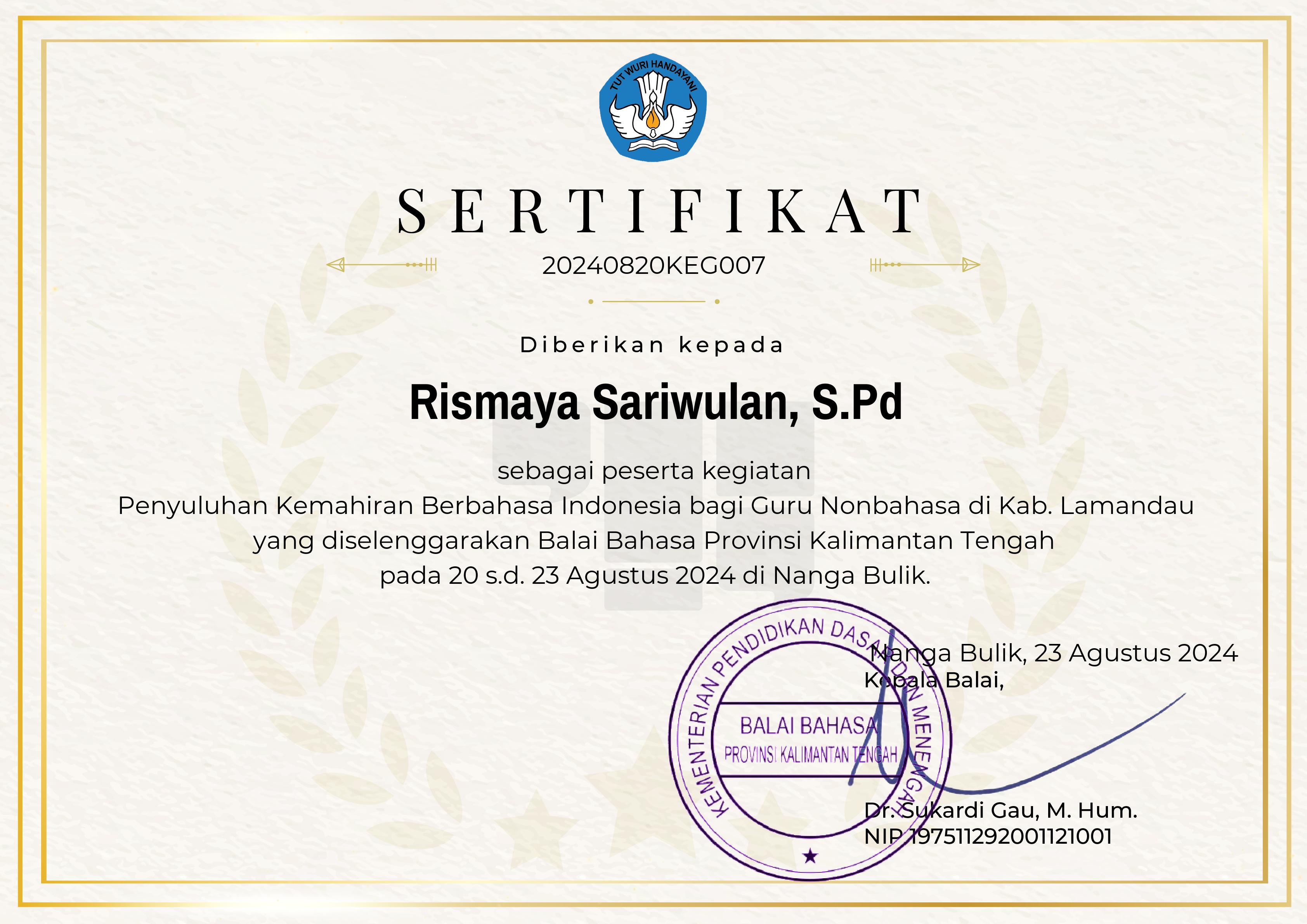 Rismaya Sariwulan, S.Pd |
