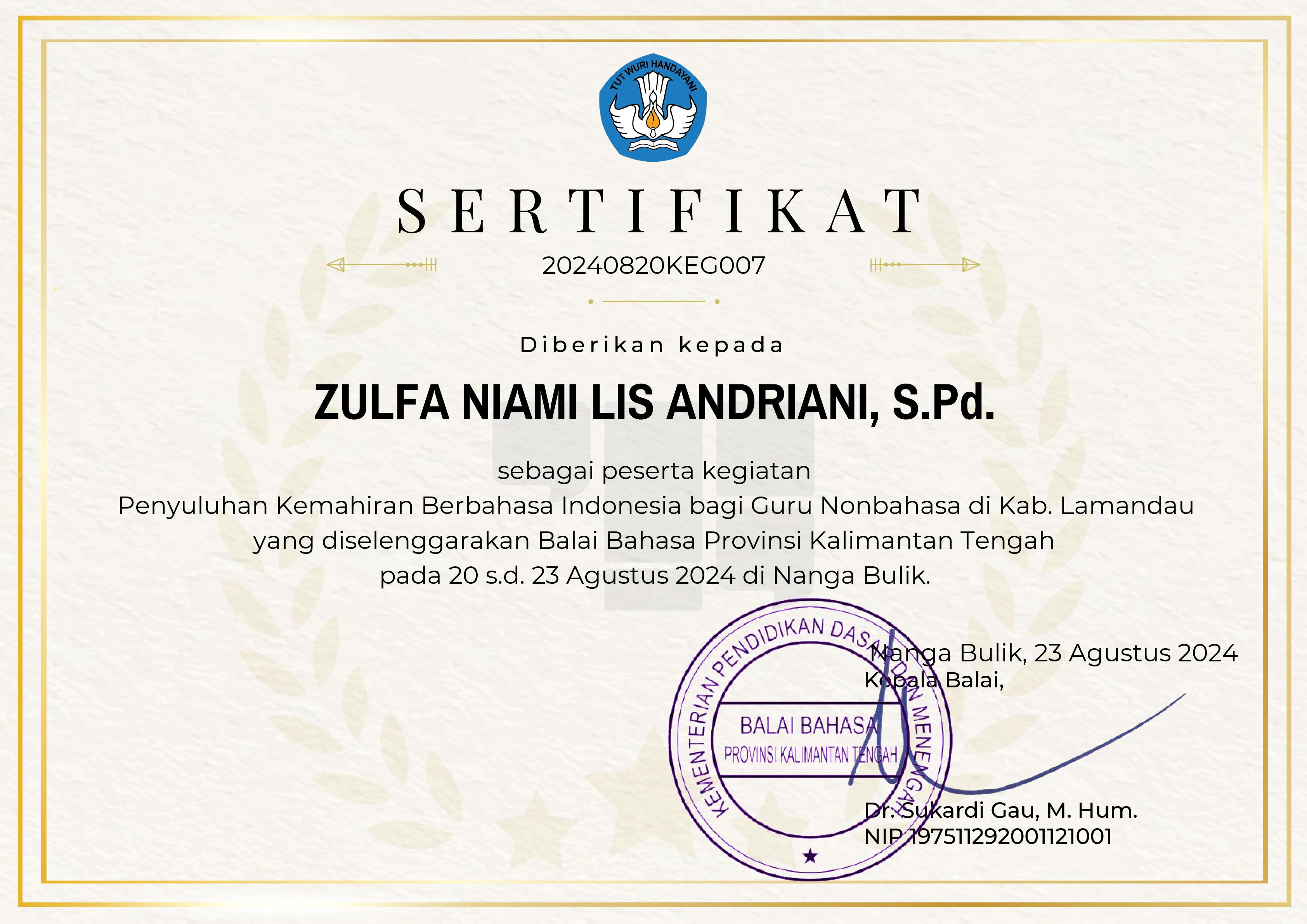 ZULFA NIAMI LIS ANDRIANI, S.Pd. |