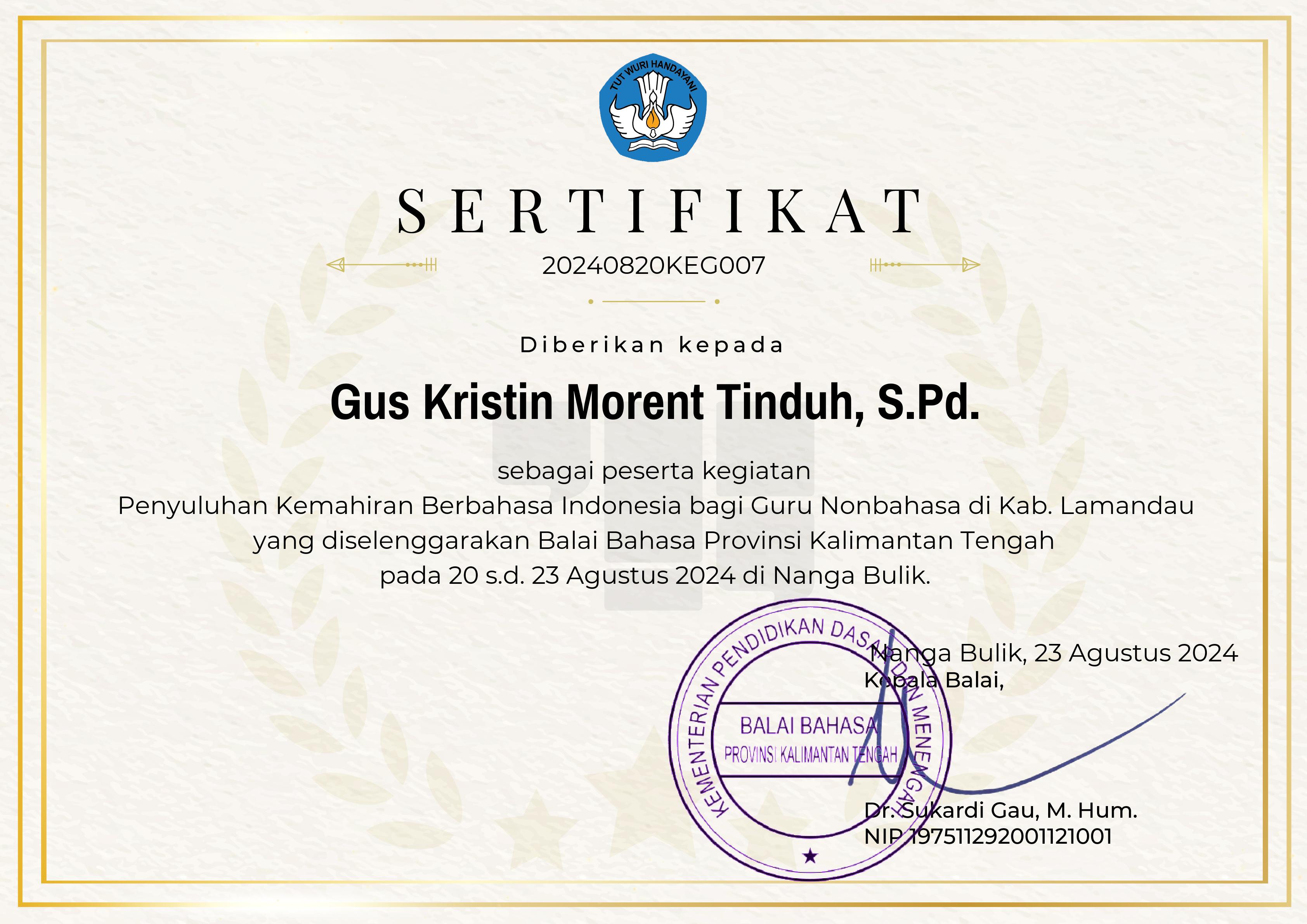 Gus Kristin Morent Tinduh, S.Pd. |